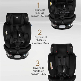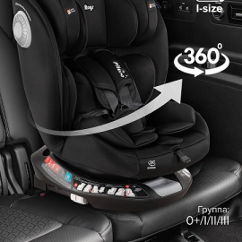 Это универсальное поворотное кресло на 360° сочетает в себе эргономичный дизайн, максимальную безопасность и комфорт для маленьких пассажиров от рождения до 12 лет.