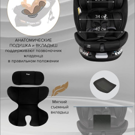 ✔ Легкость и удобство: простая установка и регулировка, а в комплекте – мягкий анатомический вкладыш и подушкадля новорожденных для дополнительной поддержки.