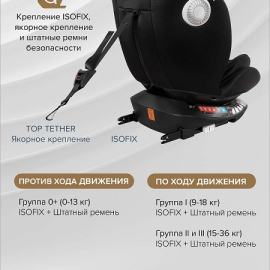 Надежное крепление IsoFix + якорный ремень;