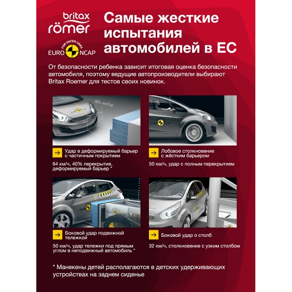 Согласно внутренним испытаниям, проводившимся на собственном полигоне, автокресло Britax Roemer Kidfix i-Size на сегодняшний день является самым безопасным среди всех автокресел компании.