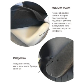 Elves+ невероятно мягкий для ребёнка. Под сидением, спинкой и в подголовнике используется пена с эффектом памяти (memory foam). Это тип материала, который обладает способностью адаптироваться к форме тела при воздействии тепла и давления. Он разработан в 1960-х года для улучшения качества сна, комфорта и поддержки в матрасах и подушках.