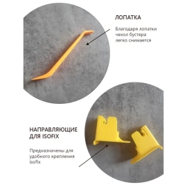 - Комплектация: автокресло-бустер, подушка под голову (для комплектации «плюс»), съемная спинка с дополнительной поддерживающей поясницу ортопедической вкладкой, крепления isofix, направляющие для isofix, ремень –натяжитель, лопатка для надевания чехла после стирки, инструкция.