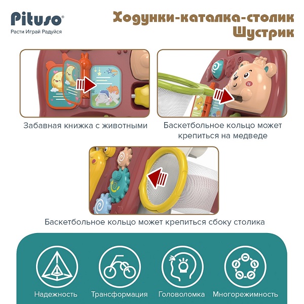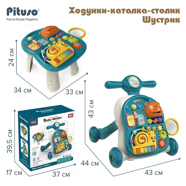 PITUSO Развивающий центр Ходунки-каталка Шустрик 43*44*43см