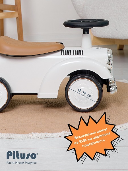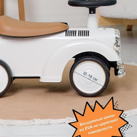 Бесшумные широкие колеса из EVA хорошо держат толокар на поверхности, а также не царапает поверхности.