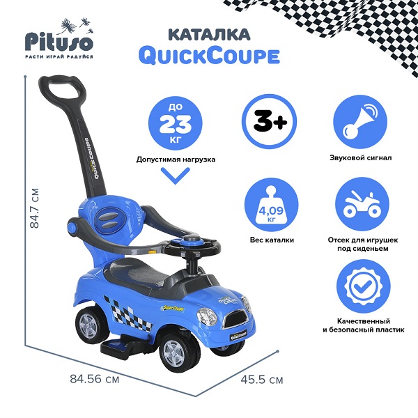 PITUSO Каталка QuickCoupe с бампером, с ручкой + сигнал