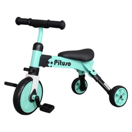 Трехколесный велосипед PITUSO 2 в 1, складной. Легкий, компактный, удобный и яркий. Можно использовать как каталку, при снятии передних педалей. Для хранения педалей на передней части велосипеда имеется специальное крепление. Компактные габариты в сложенном состоянии и малый вес, позволяют легко переносить и хранить.