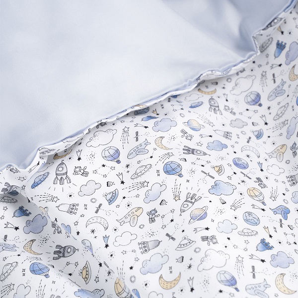 Дизайн комплекта продуман до мелочей: пастельные оттенки впишутся практически в любой интерьер и порадуют глаз, а эксклюзивный принт наполнит детскую особенной атмосферой. Кстати, после пробуждения малыш наверняка найдет себе развлечение и будет с интересом рассматривать рисунок на пододеяльнике. Каждой расцветке соответствует свое настроение. Выбирайте сами, будут это сны отважного космического путешественника, приключения с динозаврами или нежные грезы маленькой принцессы.