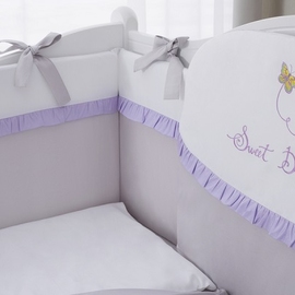 Изысканный, оригинальный, трогательный – новый эксклюзивный комплект «Sweet Dreams» от Perina. Утонченный узор - россыпь словно живых бабочек на нежном пастельном фоне. Изящные рюши, фактурная вышивка, чарующие переливы элитного сатина. Подарите вашему малышу этот сладкий сон.