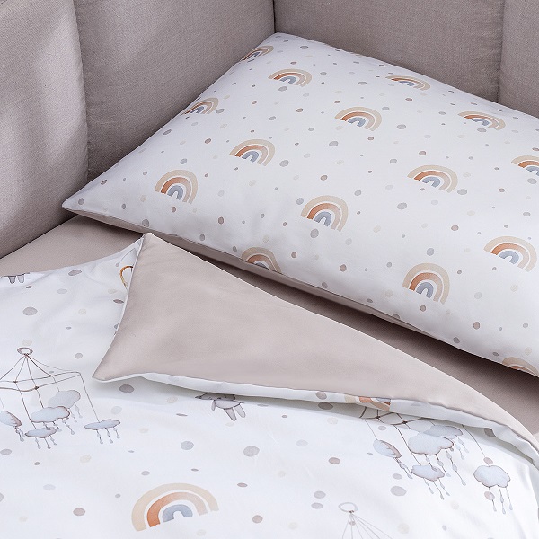 Нежный комплект Perina Kiddy из мягкого натурального сатина с акварельным рисунком в пастельных тонах успокаивает и подчеркивает уютную домашнюю атмосферу.