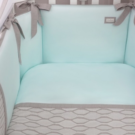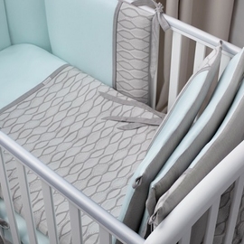 Каждая расцветка модели Elfetto обладает своим характером, становясь изюминкой детской спальни. Современная мятная или воздушная молочная с цветочным принтом— что бы вы ни выбрали, практичность комплекта вас обязательно порадует. Одна из его особенностей — универсальный полуборт, который частично закрывает кроватку и подразумевает различные варианты расположения.