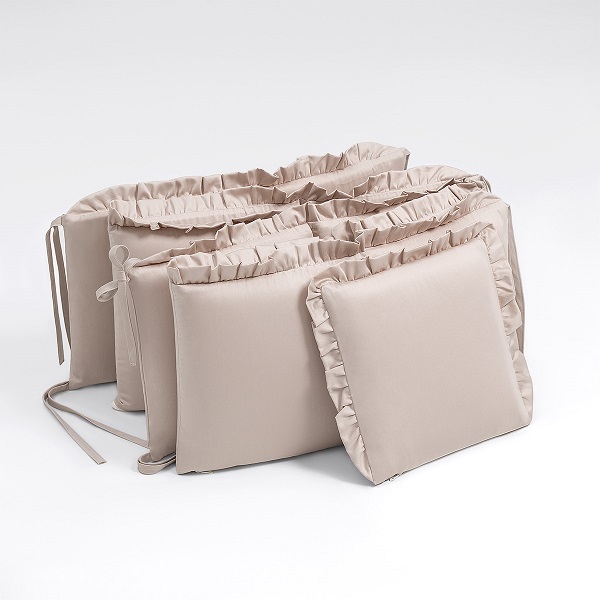 Сатиновая премиальная ткань бортиков хорошо разглаживается после стирки. Благодаря особому способу переплетения хлопковых нитей материал гладкий, как шелк. Сочетание натурального хлопка и воздушного гипоаллергенного наполнителя Холлкон обеспечивает еще одно полезное свойство: подушечки хорошо пропускают воздух и поддерживают температурный баланс.