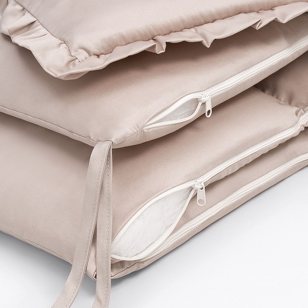 Модель подойдет как в прямоугольную, так и в овальную/круглую кроватку. Съемный чехол на молнии упрощает уход за бампером. Каждую подушечку можно достать из чехла по-отдельности. Вы можете постирать чехол, пока наполнители проветриваются (избегая попадания солнечных лучей).