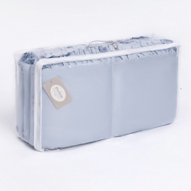 Модель подойдет как в прямоугольную, так и в овальную/круглую кроватку. Съемный чехол на молнии упрощает уход за бампером. Каждую подушечку можно достать из чехла по-отдельности. Вы можете постирать чехол, пока наполнители проветриваются (избегая попадания солнечных лучей).