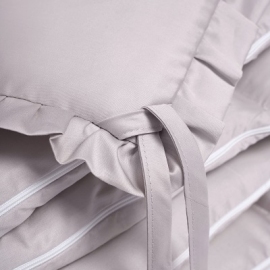 Сатиновая премиальная ткань бортиков хорошо разглаживается после стирки. Благодаря особому способу переплетения хлопковых нитей материал гладкий, как шелк. Сочетание натурального хлопка и воздушного гипоаллергенного наполнителя Холлкон обеспечивает еще одно полезное свойство: подушечки хорошо пропускают воздух и поддерживают температурный баланс.
