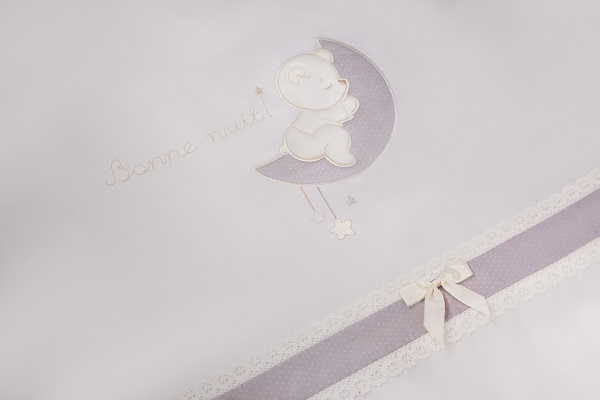 Каждая деталь модели «Bonne Nuit» создана, чтобы подарить вашему малышу приятные сны, окружить его заботой и теплом домашнего уюта. Любое прикосновение к нежному сатину обеспечит приятные ощущения, а натуральные велюровые аппликации вызовут настоящий восторг и станут увлекательным открытием после пробуждения.
