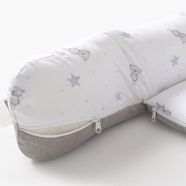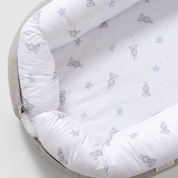 Чехол гнёздышка съемный, на молнии. Вы легко можете достать как матрасик, так и наполнитель бортика и постирать чехол. Молнии в чехле вшиты особым образом, чтобы ребёнок не смог дотянуться до них и случайно защемить пальчик.