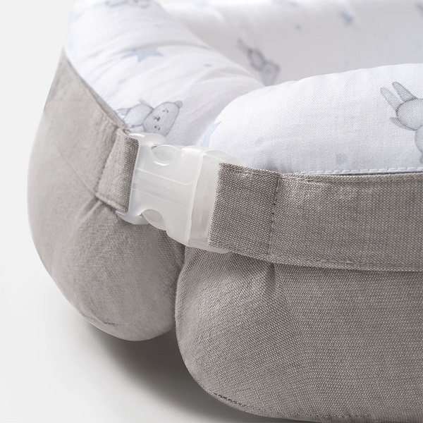 Гнёздышко выполнено из натурального хлопка Eco Soft Cotton. Это очень мягкая разновидность хлопка, который отлично пропускает воздух и долго остается как новый даже после многократных стирок. Его секрет в специальном способе создания узора без окрашивания.