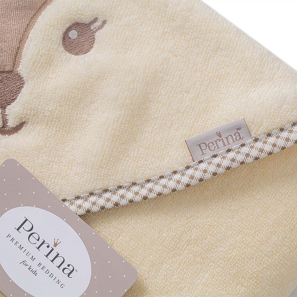 Полотенце из махровой ткани - 100% хлопок. Плотность 420 грамм / м.кв. Его размеры позволяют полностью укрыть малыша, а махровая ткань прекрасно впитывает воду. После стирки хлопок остается пушистым и приятным на ощупь.