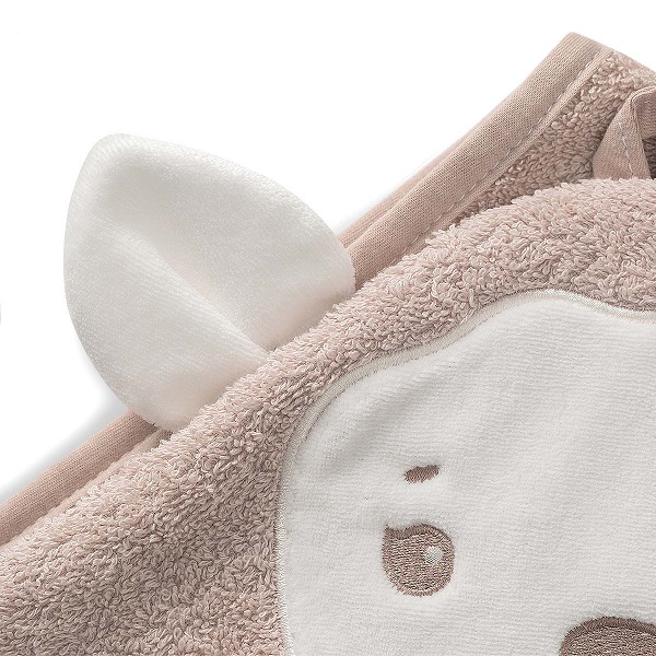 Мягкое натуральное полотенце Muzzle превратит купание в увлекательную игру. Капюшон с милой мордашкой с объемными ушами — одновременно практичная и милая деталь, поднимающая настроение.