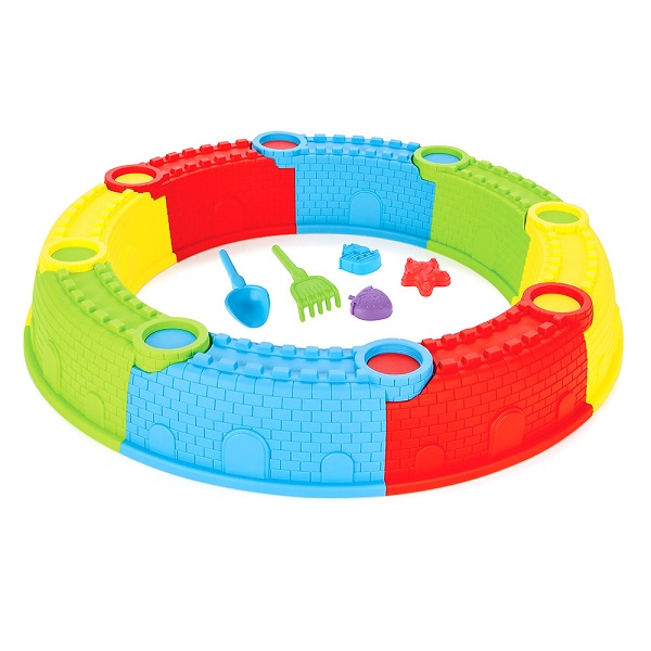 Песочница «Песочный Замок» с аксессуарами - это прекрасно организованная площадка для самостоятельной игры ребенка. Представляет собой восемь обособленных элементов разных цветов, которые скрепляются между собою и образуют круг.
