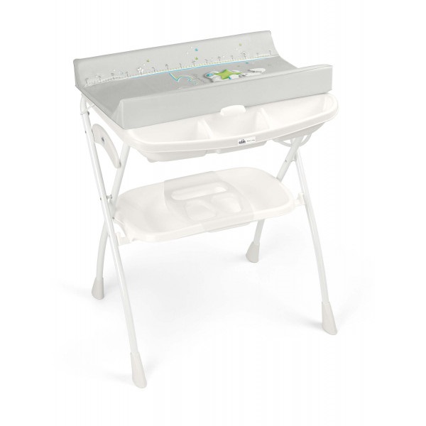 - он укомплектован мягким пеленальным матрасом с нескользящим дном, полкой-держателем для бутылочек и необходимых принадлежностей во время купания;