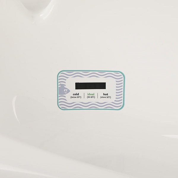 Не нужно переворачивать тяжелую ванночку, чтобы вылить воду — предусмотрена сливная пробка. Встроенный термометр с понятными обозначениями поможет определить идеальную температуру воды для купания малыша (36-38°С). Предусмотрено отверстие для крючка, чтобы ванночку можно было повесить. Для купальных принадлежностей предусмотрены полочки.