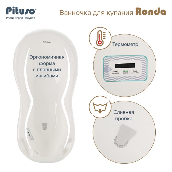 Ванночка Pituso Ronda со сливом и термометром 100 см