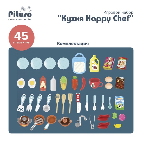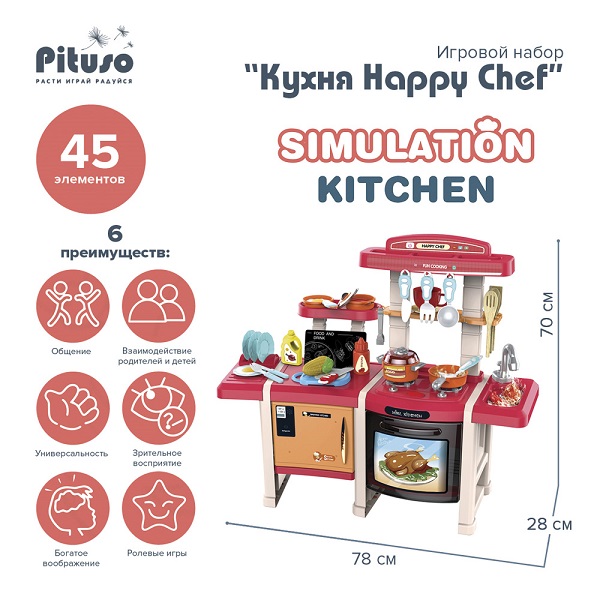 PITUSO Игровой набор "Кухня Happy Chef", 78*28*70 см, 45 эл-в, свет,звук
