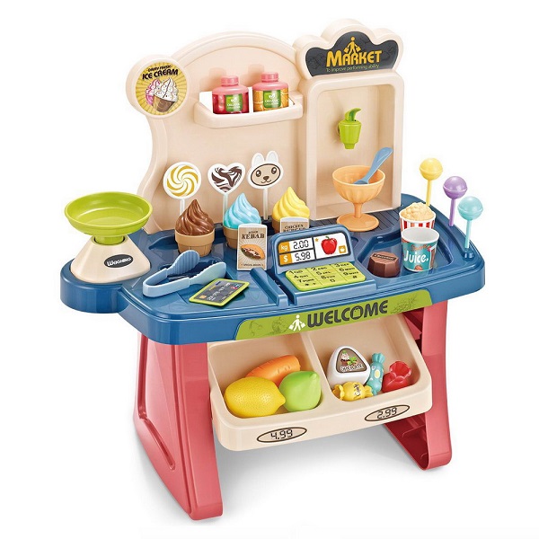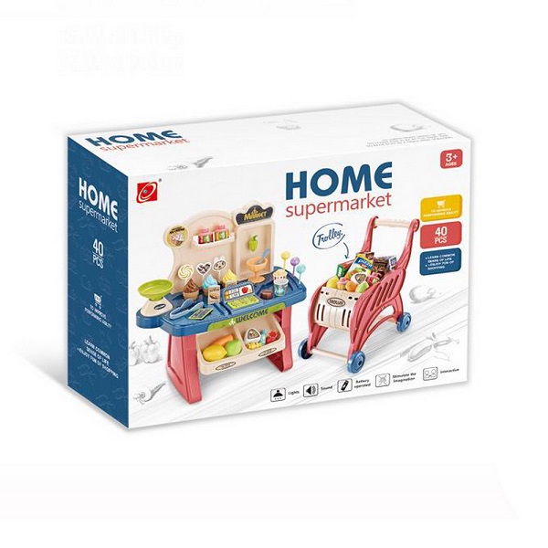 - В набор входит: Столик-1 шт., касса - 1 шт, весы-1 шт., тележка-1 шт., продукты и напитки-39шт.