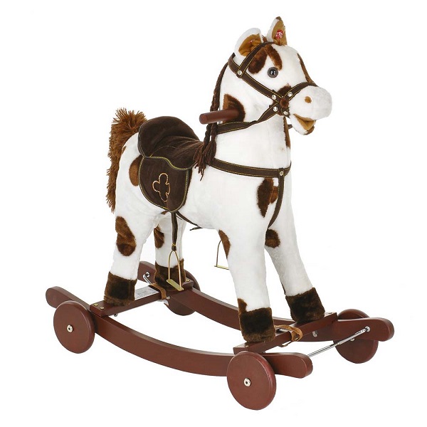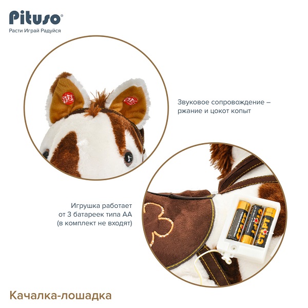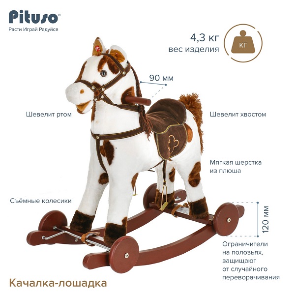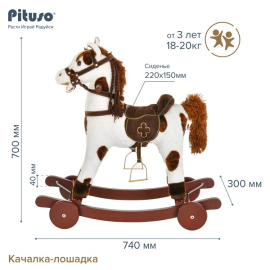 - PITUSO Качалка-Лошадка c колесами мягконаб.,муз.,Белый с коричн.пятнами,74*30*70см