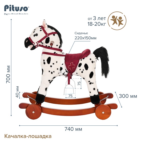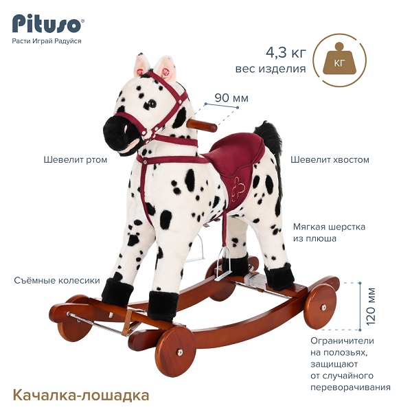 PITUSO Качалка-Лошадка с колесами Белый с черными пятнами
