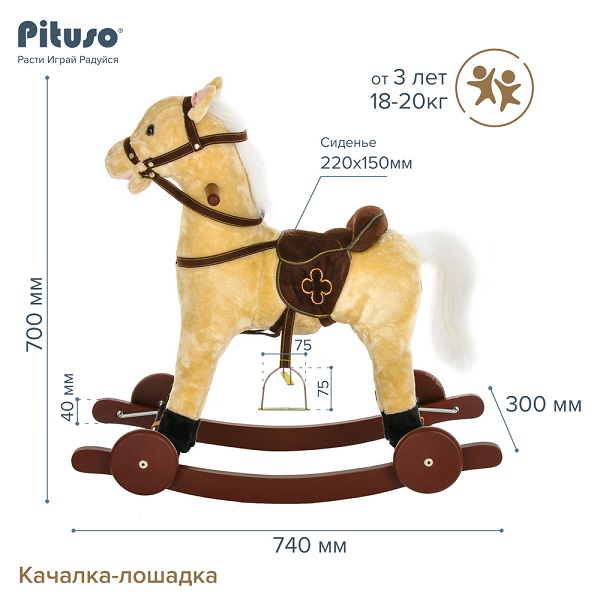 PITUSO Качалка-Лошадка с колесами светло-бежевый