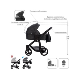 - Для переноски люльки: удобные боковые ручки, ручка на капюшоне.