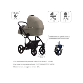 Конструкция данной коляски позволяет установить на нее люльку, сиденье прогулочного блока или автомобильное кресло. Люлька и прогулочный блок реверсивные, их можно устанавливать как «лицом к маме», так и «лицом от мамы». Спальный вариант коляски предназначен для детей в возрасте от 0 до 7 месяцев (весом до 9 кг), прогулочный блок рассчитан на возраст от 7 месяцев до 3 лет (вес ребенка до 15 кг).