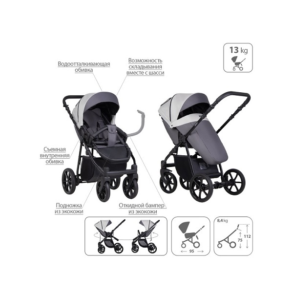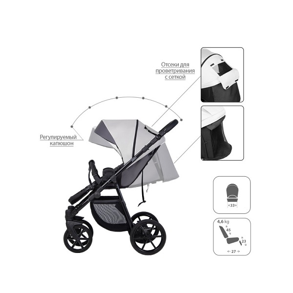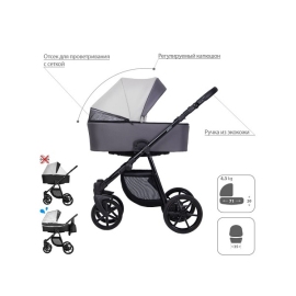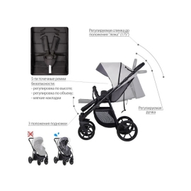 Конструкция данной коляски позволяет устанавливать на нее люльку, сиденье прогулочного блока или автомобильное кресло. Люлька и прогулочный блок реверсивные, их можно устанавливать как «лицом к маме», так и «лицом от мамы». Спальный вариант коляски предназначен для детей в возрасте от 0 до 7 месяцев (весом до 9 кг), прогулочный блок рассчитан на возраст от 7 месяцев до 3 лет (вес ребенка до 15 кг).