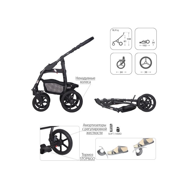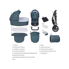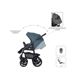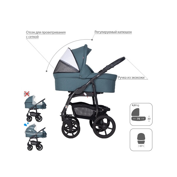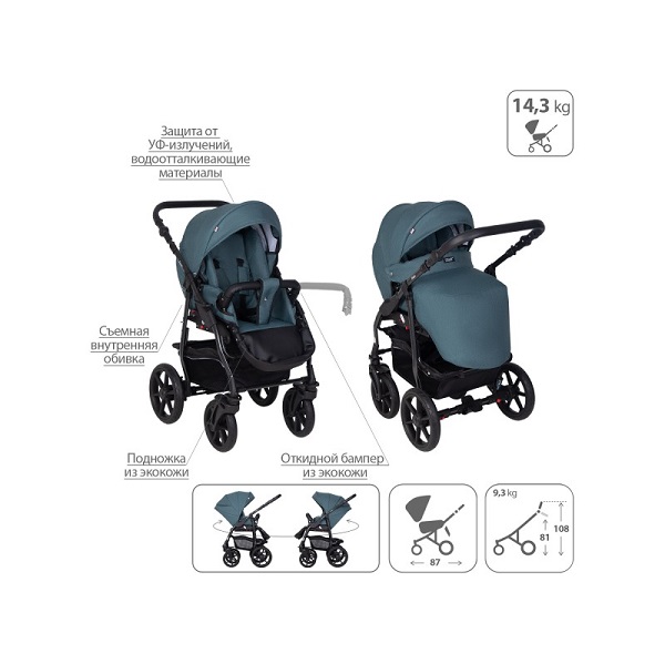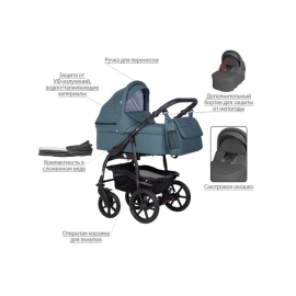 - Обивка коляски: водоотталкивающая, с УФ-защитой.