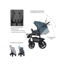 Конструкция данной коляски позволяет устанавливать на нее люльку или сиденье прогулочного блока. Люлька и прогулочный блок реверсивные, их можно устанавливать как «лицом к маме», так и «лицом от мамы». Спальный вариант коляски предназначен для детей в возрасте от 0 до 7 месяцев (весом до 9 кг), прогулочный блок рассчитан на возраст от 7 месяцев до 3 лет (вес ребенка до 15 кг).