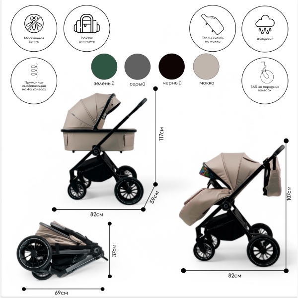 BubaGO Bloom – это модульная коляска 3 в 1, которая представляет собой оптимальный выбор для родителей, которые ценят красоту, функциональность и практичность.