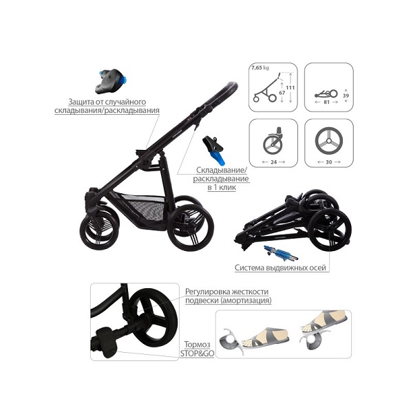 - Автоматическая блокировка коляски во время раскладывания (AUTO-BLOCKER).