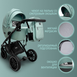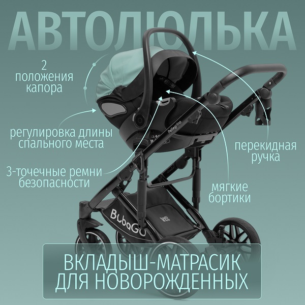 BubaGO Pellegrino 3-в-1 — универсальное решение, которое сочетает в себе элегантный дизайн, высокую проходимость и продуманный функционал для максимального комфорта и родителей, и малыша.