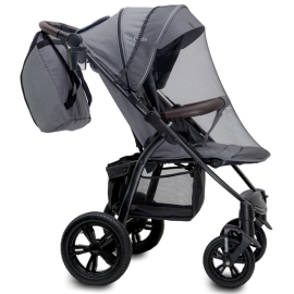 Регулируемая родительская ручка с накладкой из эко кожи помогает подстроить коляску под любой рост. Задняя стенка коляски полностью открывается для проветривания, а встроенная в нее москитная сетка помогает циркулировать воздуху.
