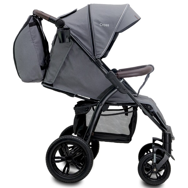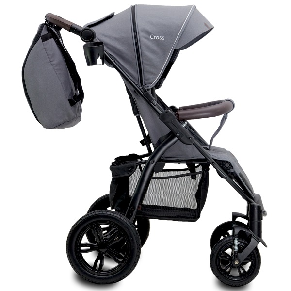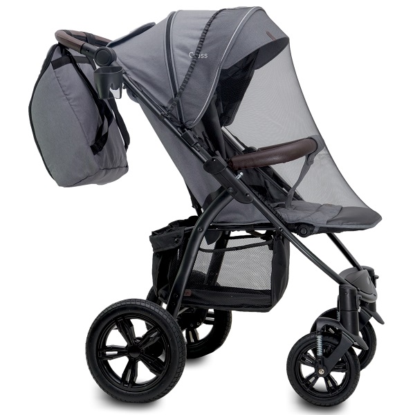 Bubago Cross имеет механическую спинку, просторное сидение, может легко превращаться в спальное место вплоть до горизонтального. Регулируемую подножку с эко кожей на уровне обуви малыша, что позволяет не вымазывать подножку после прогулки, а также не создаст дискомфорт для ножек малыша в теплую и прохладную погоду (парниковый эффект будет отсутствовать). В подножке хранится москитная сетка, которую легко можно достать, а так же легко упаковать обратно.