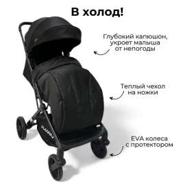 Коляска оснащена небольшими, юркими колесами, удобным ножным тормозом и удобной родительской ручкой. Коляска удобно управляется, даже одной рукой.