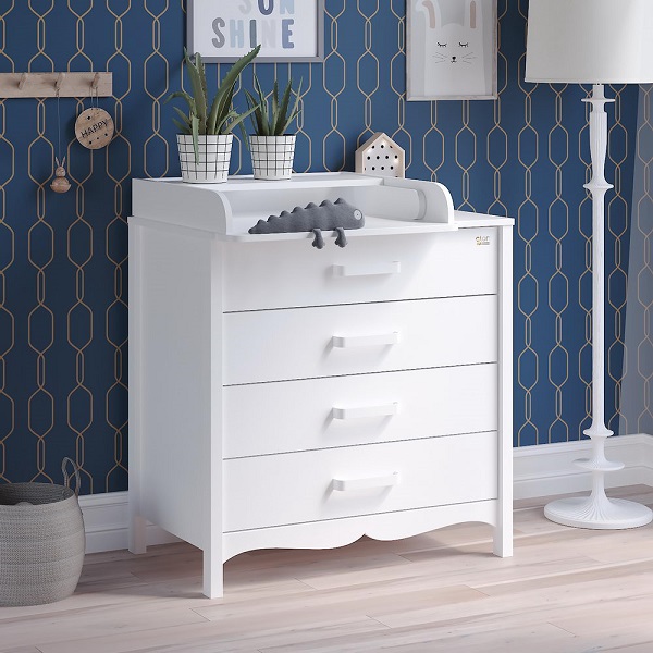 - Раскладной пеленальный столик можно установить слева, справа или по центру, он легко снимается, не оставляя никаких следов на столешнице, получается обычный комод.