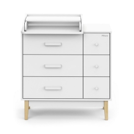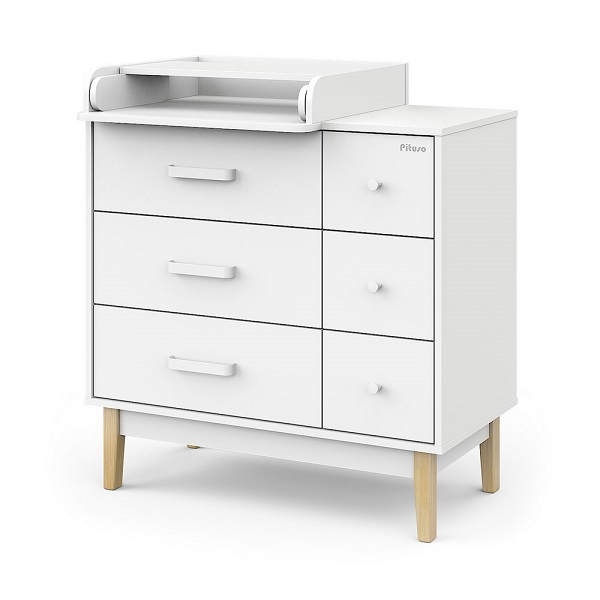 - пеленальный столик можно установит слева, справа или посередине комода, а когда он будет не нужен - снять и убрать. Но удобнее всего его устанавливать слева, тогда будет доступ к верхнему правому ящику при раскрытом пеленальном столике