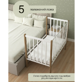 для создания уюта и максимального комфортмного сна младенца конструкторы СКВ создали обсолютно уникальную кроватку, которая выполнена из натуральных материалов с использованием безопасных красителей. СКВ 3190111-6 максимально адаптироватна под родительскую кроватку благодаря 5 уровневой регулировки высоты дна и комплекта ремней для крепления к взрослой кровати.