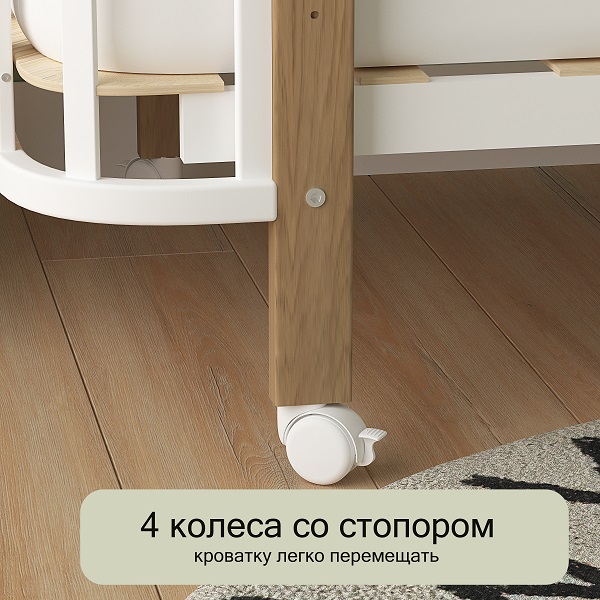 - Колеса в комплекте, для возможности перемещения кроватки