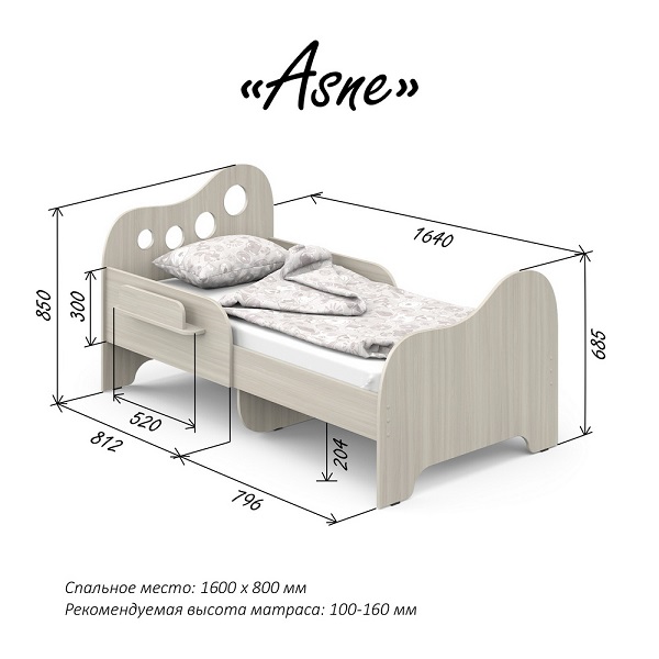 Подростковая кровать со спальным местом 160*80 см. Отлично подходит для детей как раннего, так и подросткового возраста. Модель не имеет острых углов. Комплектация бортиком — удобное дополнение к кровати, которое гарантирует безопасный сон любителю активно ворочаться во сне.
