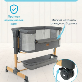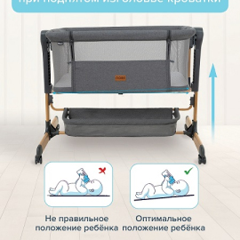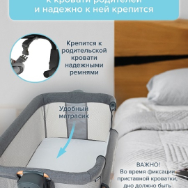 устанавливается вплотную к кровати родителей и надежно к ней крепится