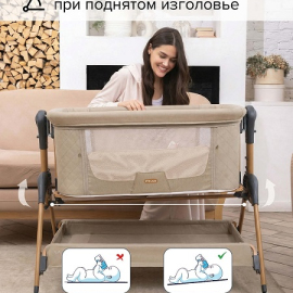 • Забота о здоровье: Регулируемый наклон изголовья помогает малышу легче дышать при насморке и предотвращает срыгивание после еды.